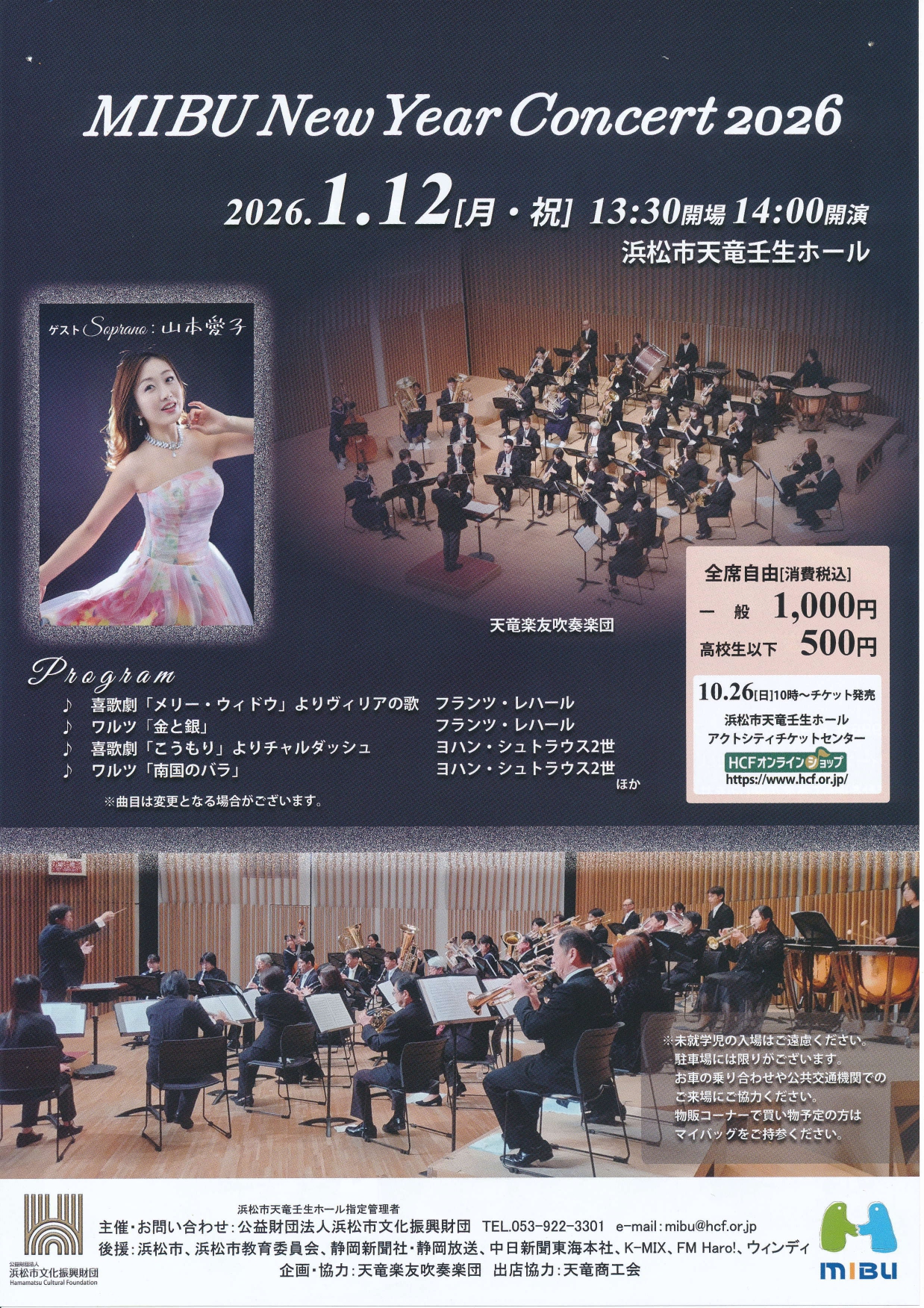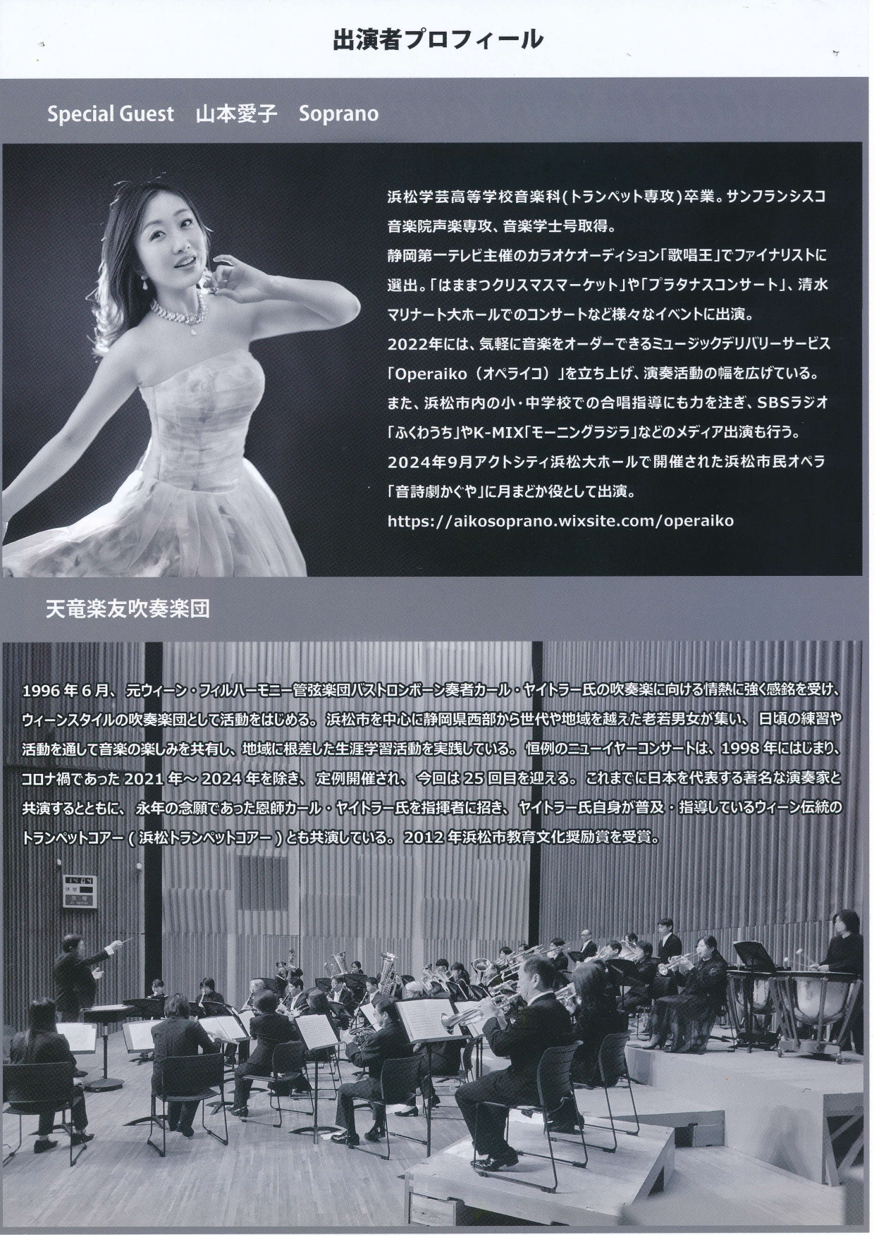 【出演】 スペシャルゲスト:山本愛子(ソプラノ) 天竜楽友吹奏楽団